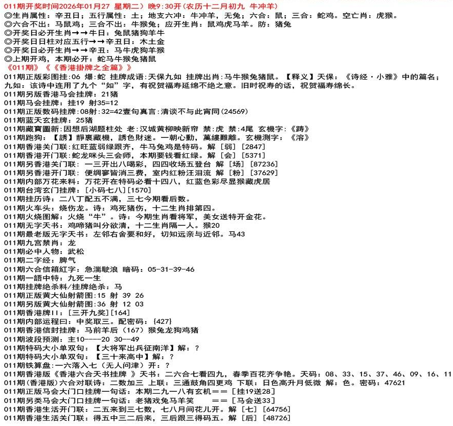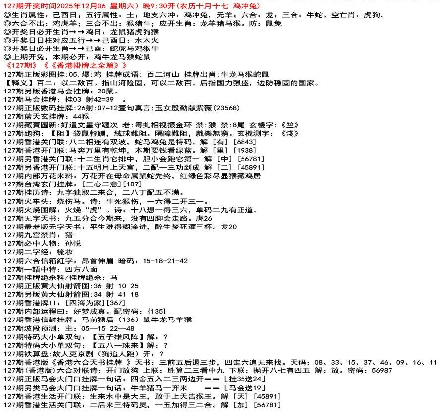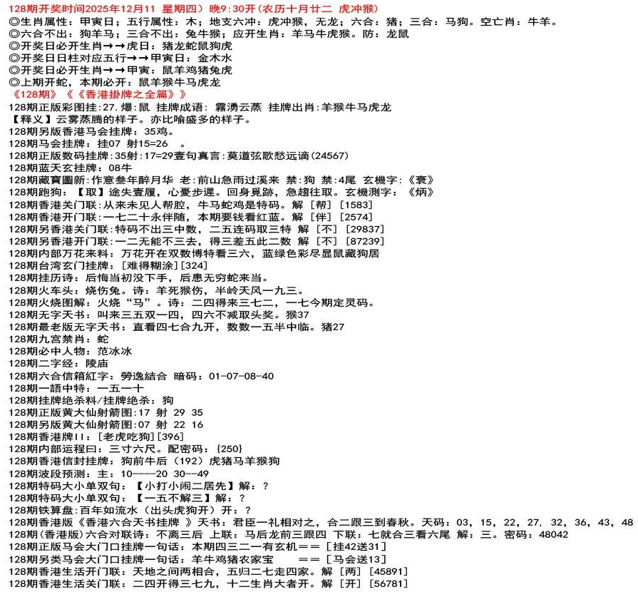 ◎六合不出:牛龙猴;三合不出:鼠蛇鸡;应开动物:羊兔猪虎狗。防:鼠马